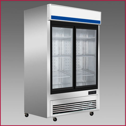 Dukers Double Glass Door Reach In Refrigerator, Top Mount Compressor D55AR-GS2
