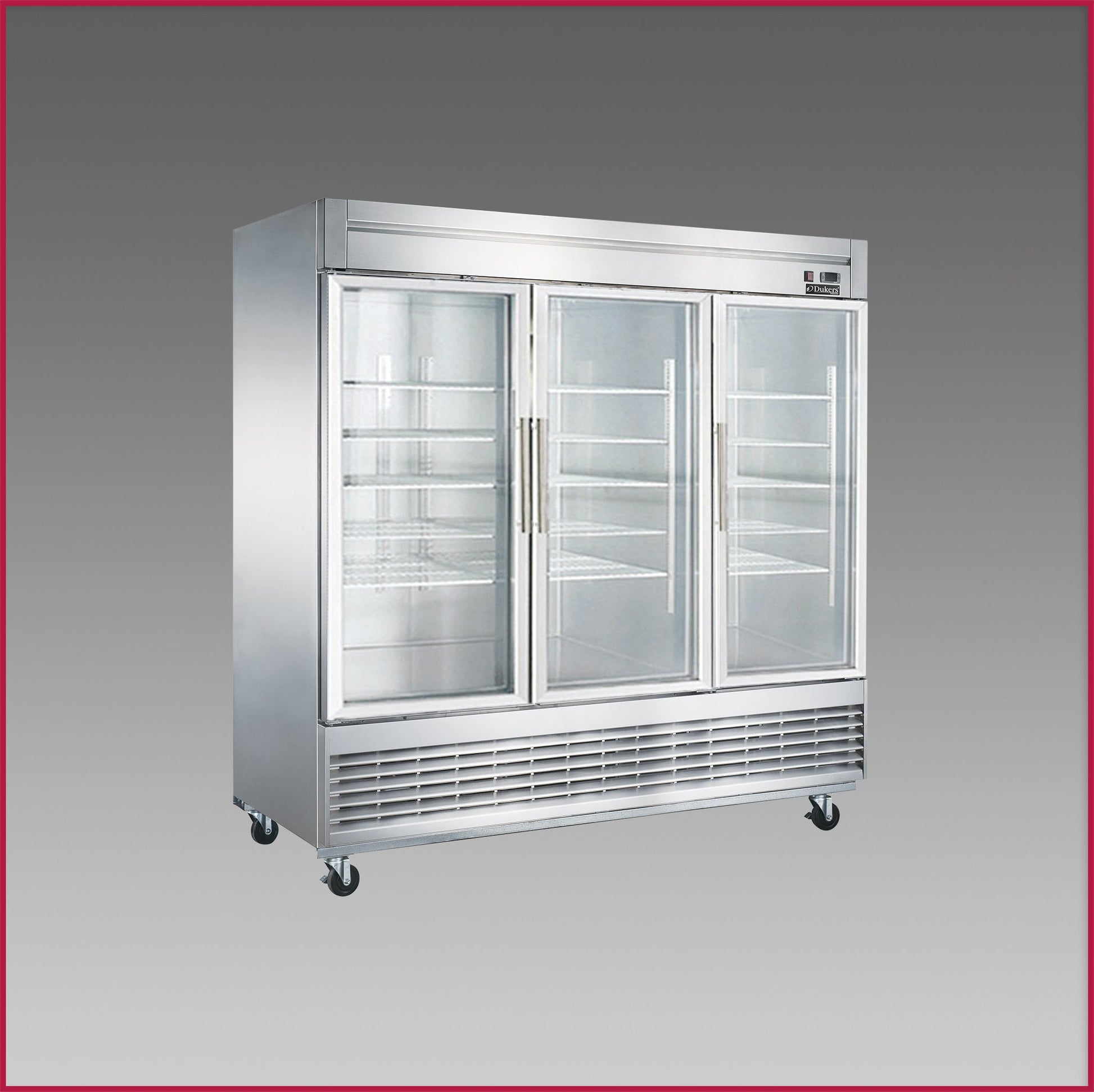 Dukers Three Glass Door Reach In Refrigerator, Bottom Mount Compressor D83R-GS3